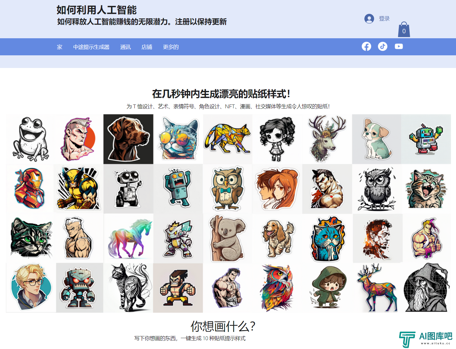 一键生成:用户只需描述想要绘制的内容,即可一键生成10种不同的贴纸风格。创意启发:提供多种贴纸样式,激发用户的创意灵感。使用示例: