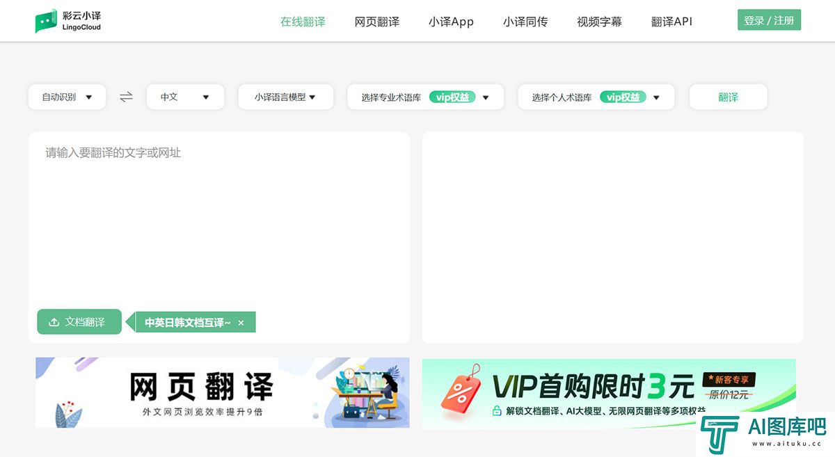 1、彩云小译网页版可以在线输入文字翻译,还支持上传文件(docx或者pdf)翻译。不过想要查看翻译好的全文需要下载翻译好的文件,而且有免费的次数限制。