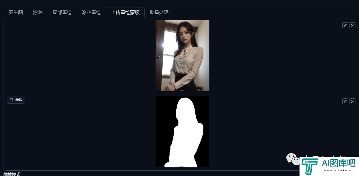 和刚才一样,选择我们想要修改的蒙版,上传到重绘蒙版当中。