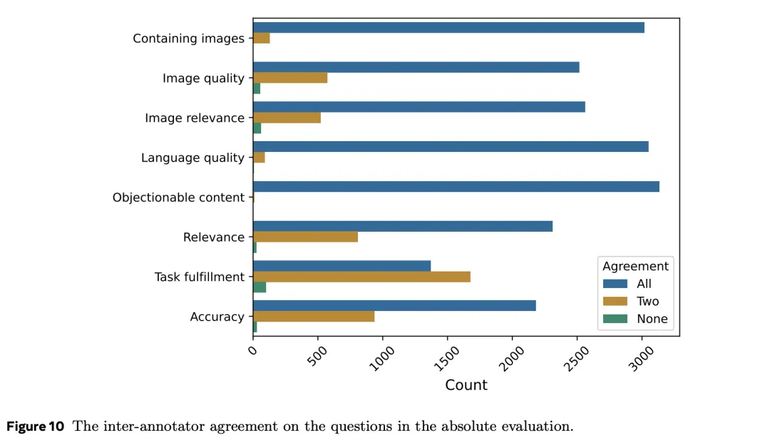 为了了解人类标注者的质量,以及问题的设计是否合理,研究人员还检查了不同标注者之间的一致性程度。