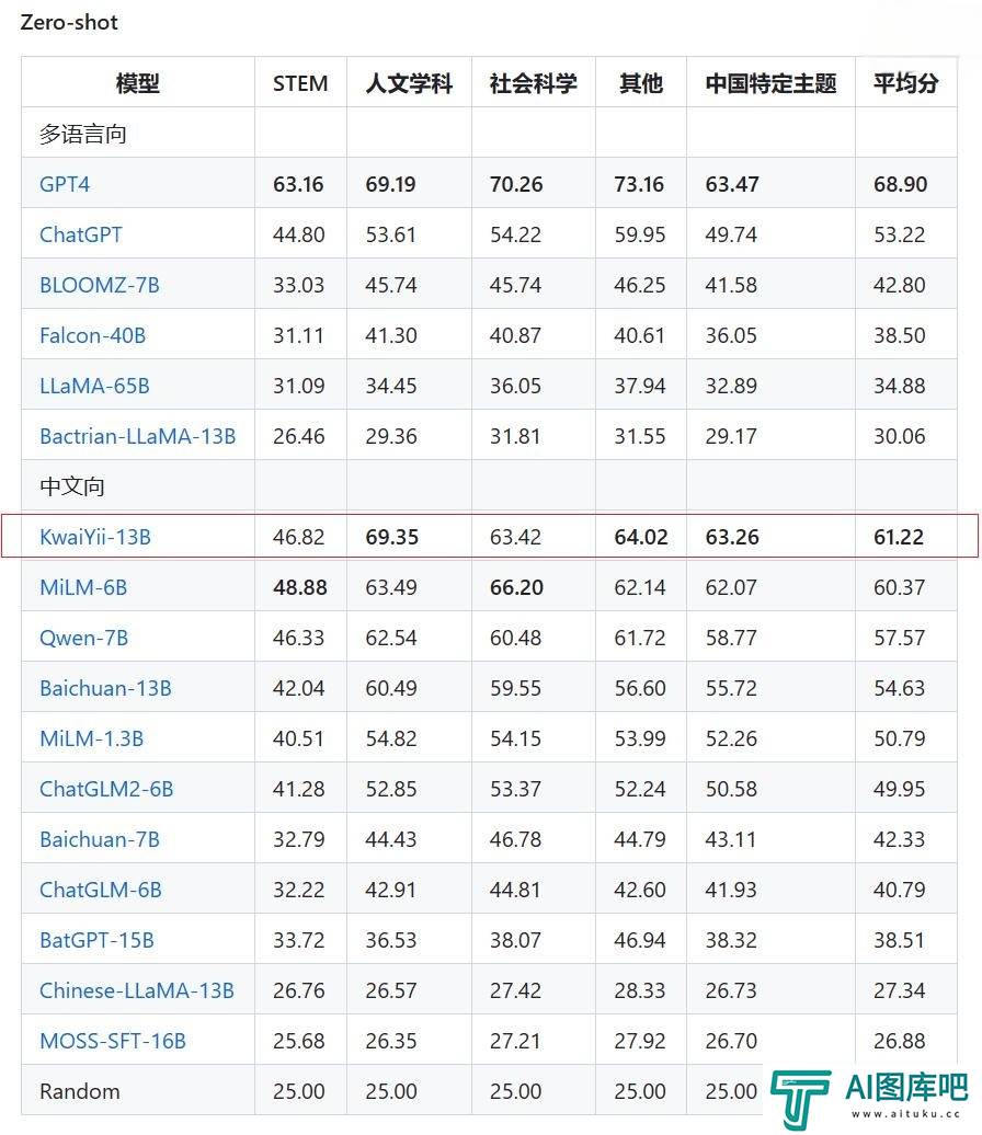 快手首个大语言模型“快意”亮相CMMLU排行榜,中文测评排名第一