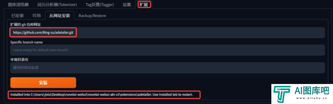 安装方法:在SD webui的扩展中,选择“从网址安装”,然后输入以下链接: