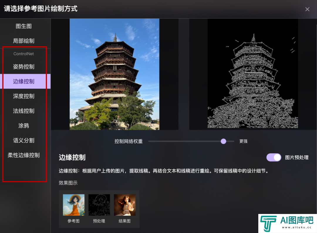 在图生图界面,新版本的秒画还将ControlNet这一宝藏工具进行了整合,用户无需跳转,直接在“图生图”功能下即可使用,进阶创作更快捷。